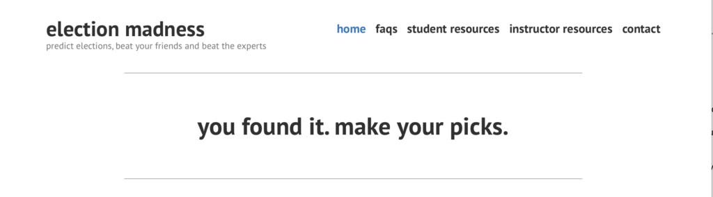 Election Madness is built on some basic principles that make it useful for teaching. First, it is simple. Students pick the winners of about 20 elections, hoping to earn points that are similar to March Madness’ seedings. Upset picks can earn more points than picking favorites. There are no other complex rules for students to sort through – this is like Tetris, not chess. The simplicity lowers the barriers to entry, making the game valuable for introductory students and easy for teachers to use.